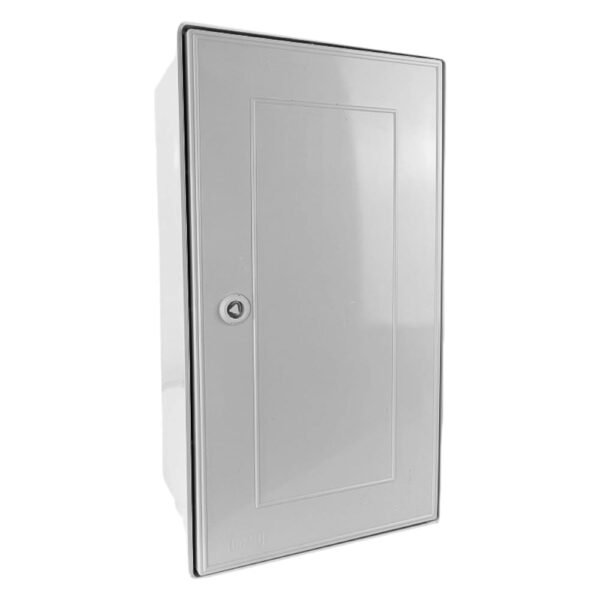 • Dotada de uma tampa porta frontal transparente em policarbonato fechada através de quatro parafusos para proteção e isolamento do contador também para uma melhor visualização de leituras do contador;